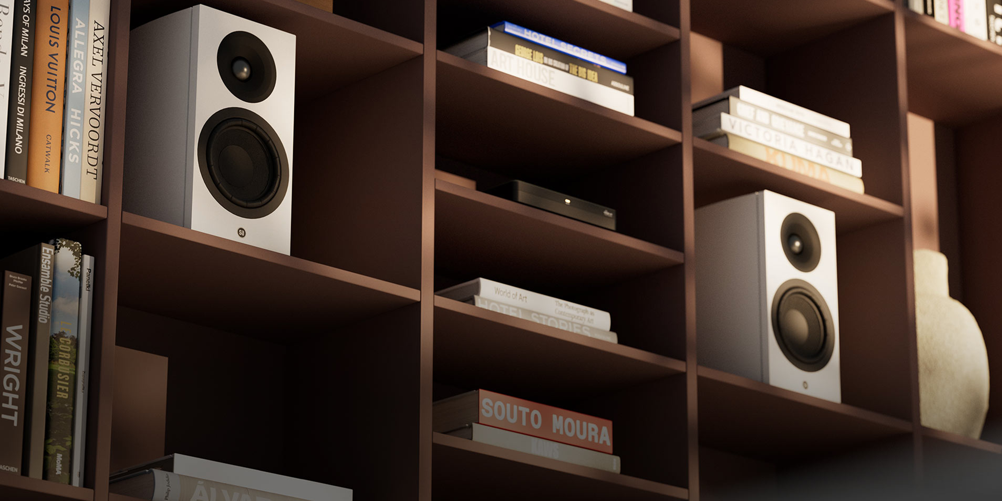 Uanset hvor du placerer dem, tilpasser højttalerne sig. Stil dem på en stander, en hylde eller hæng dem på væggen – Legend 5.2 silverback DS leverer enestående lyd fra enhver placering. De er udført i satin sort eller hvid lakering med elegante stoframmer og ser lige så raffinerede ud, som de lyder.