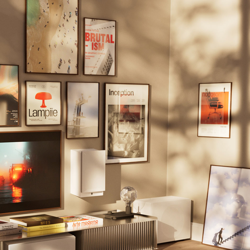 An EISA Award–winning speaker designed to hang on the wall with a built-in 225-watt total amplifier power, delivering advanced sound without taking up floor space. It is proof that wall-mounted speakers can also create high-end music experiences. Dimensions: 28.6 × 47 × 15.4 cm. Save 4.000 kr. when buying the complete music system with Surround Hub X.